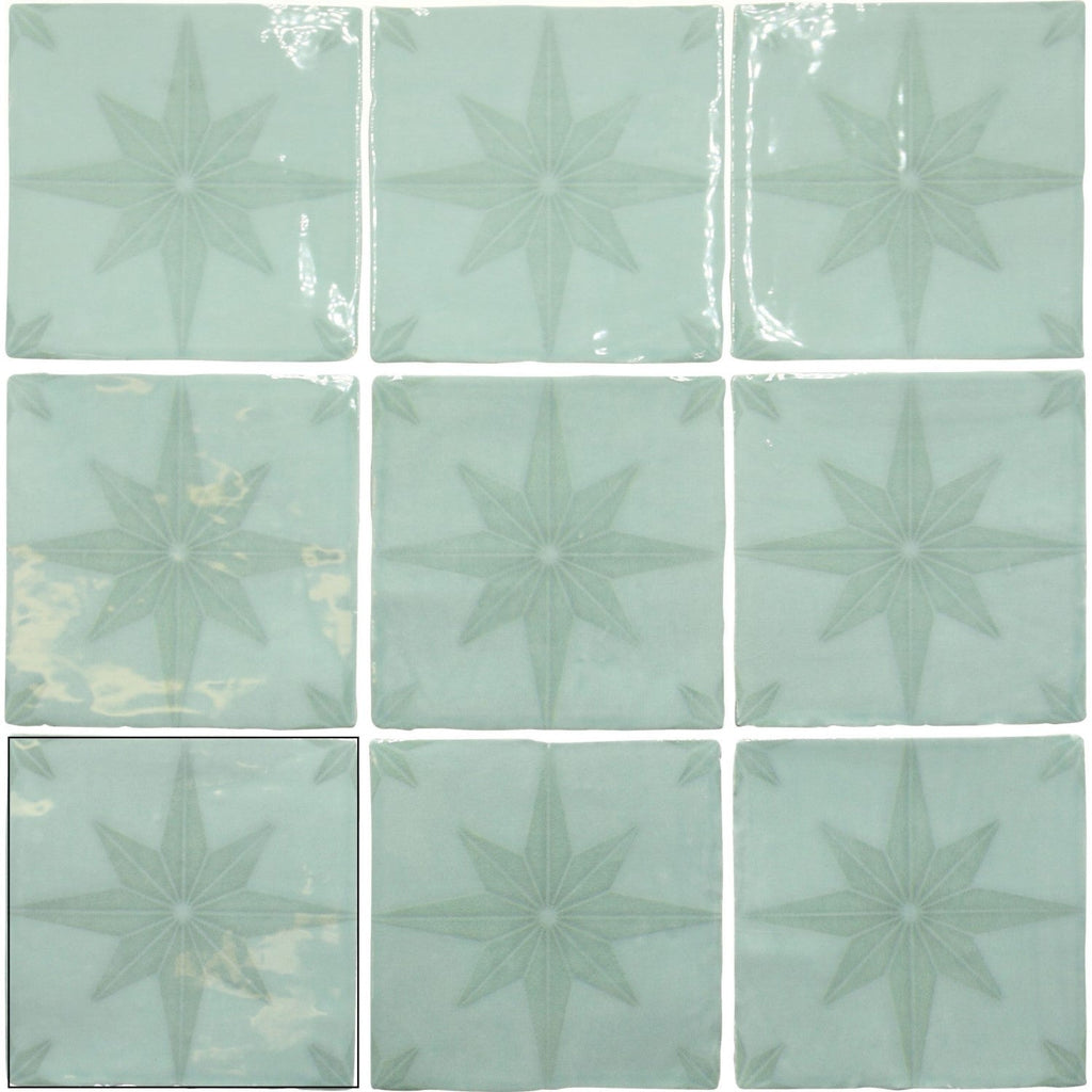 Starburst Deco Aqua Ceramic 5x5 Tile