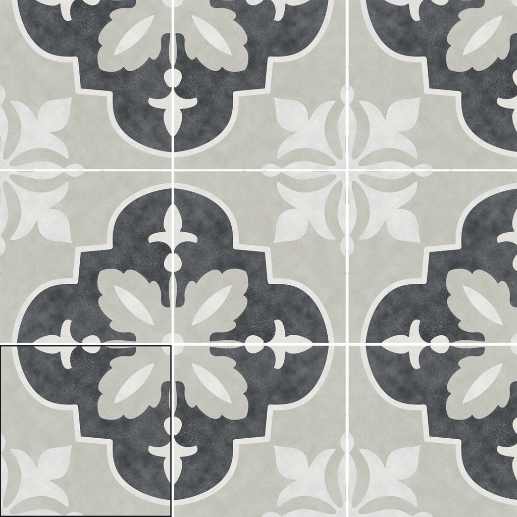 Patterned porcelain decorative floor tile is ideal for high-traffic rooms in commercial properties and residential homes. Decorative 6x6 floor tiles can help make a small space appear larger. Matte gray decorative floor tile for kitchen, bathroom, entryway, and laundry room.