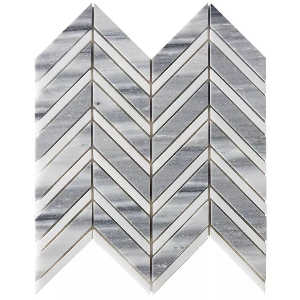 Marmara Gray & White Marble Mosaic Tile - Chevron - Polished