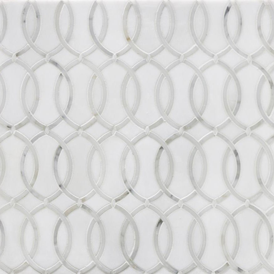 Calacatta and Thassos Marble Waterjet Mosaic Tile in Interlocked Ovals