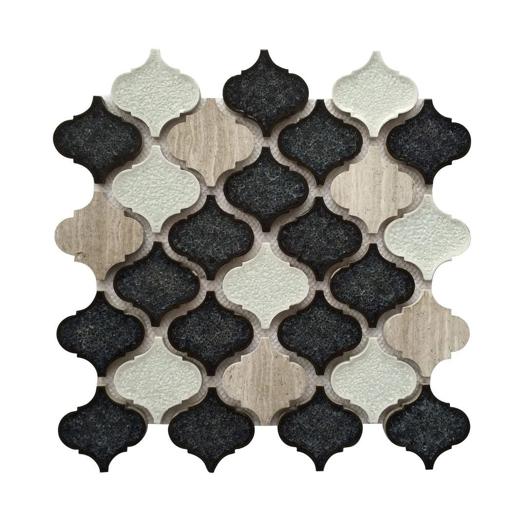 Crackled Glass & Wooden Marble Mosaic Wall Tile in Moroccan Arabesque Lanterns