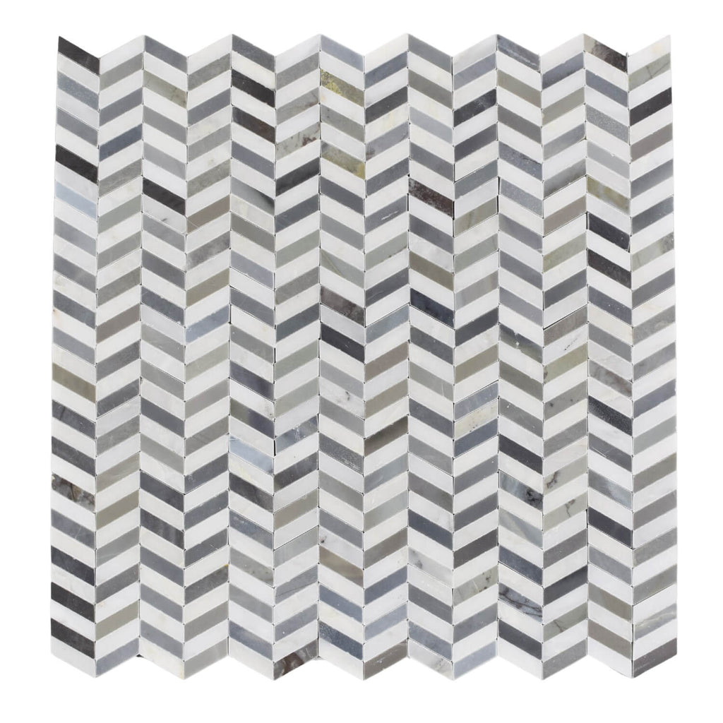 Bardiglio Gray & Carrara Venato Marble Mini Chevron Waterjet Mosaic Tile - TileBuys