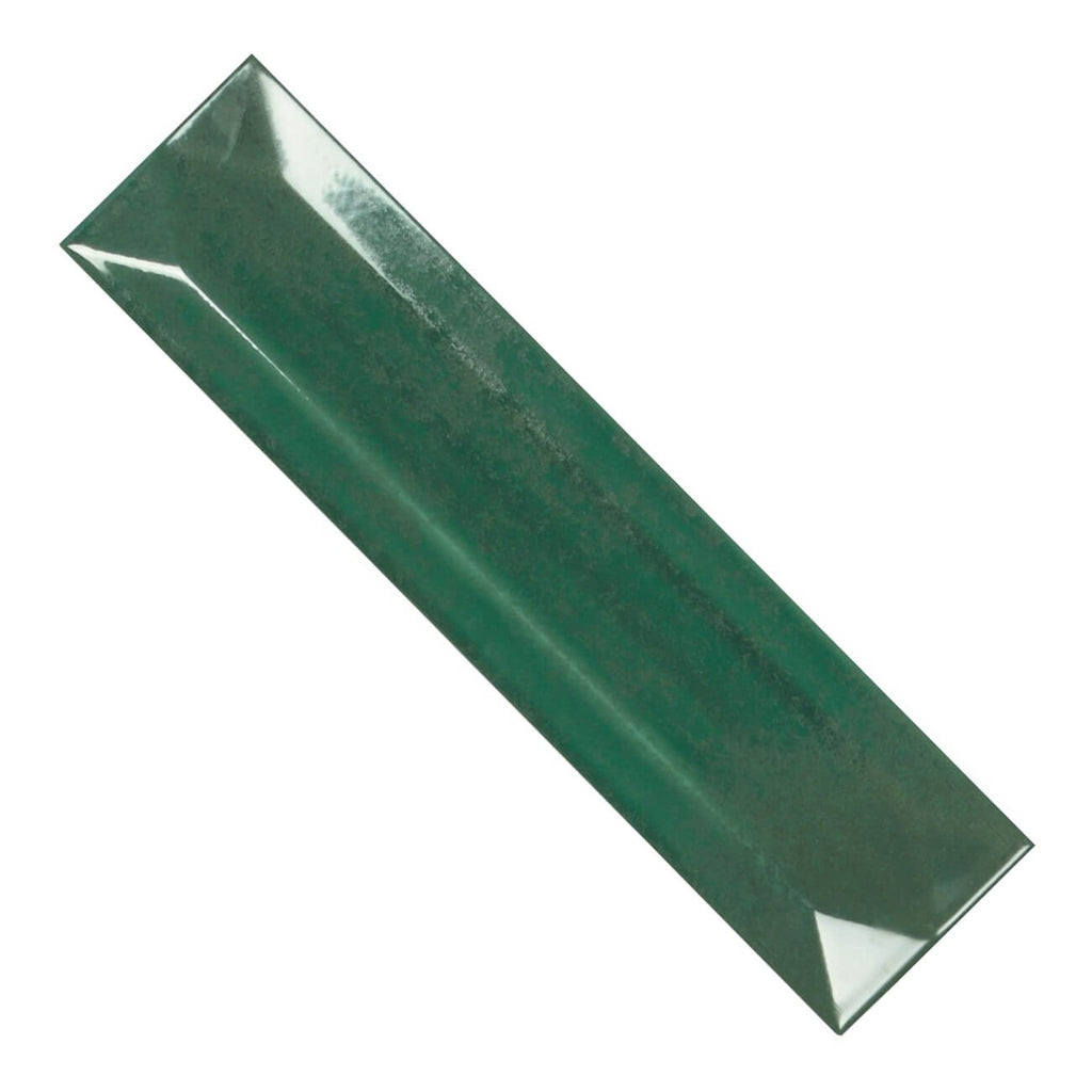 Glossy ceramic 3 x 12 inch three-dimensional subway wall tile in palm green. Vivid dark green 3D subway tile with glossy finish for interior walls including bathroom backsplash, shower walls, and kitchen backsplash. 12 tile faces.