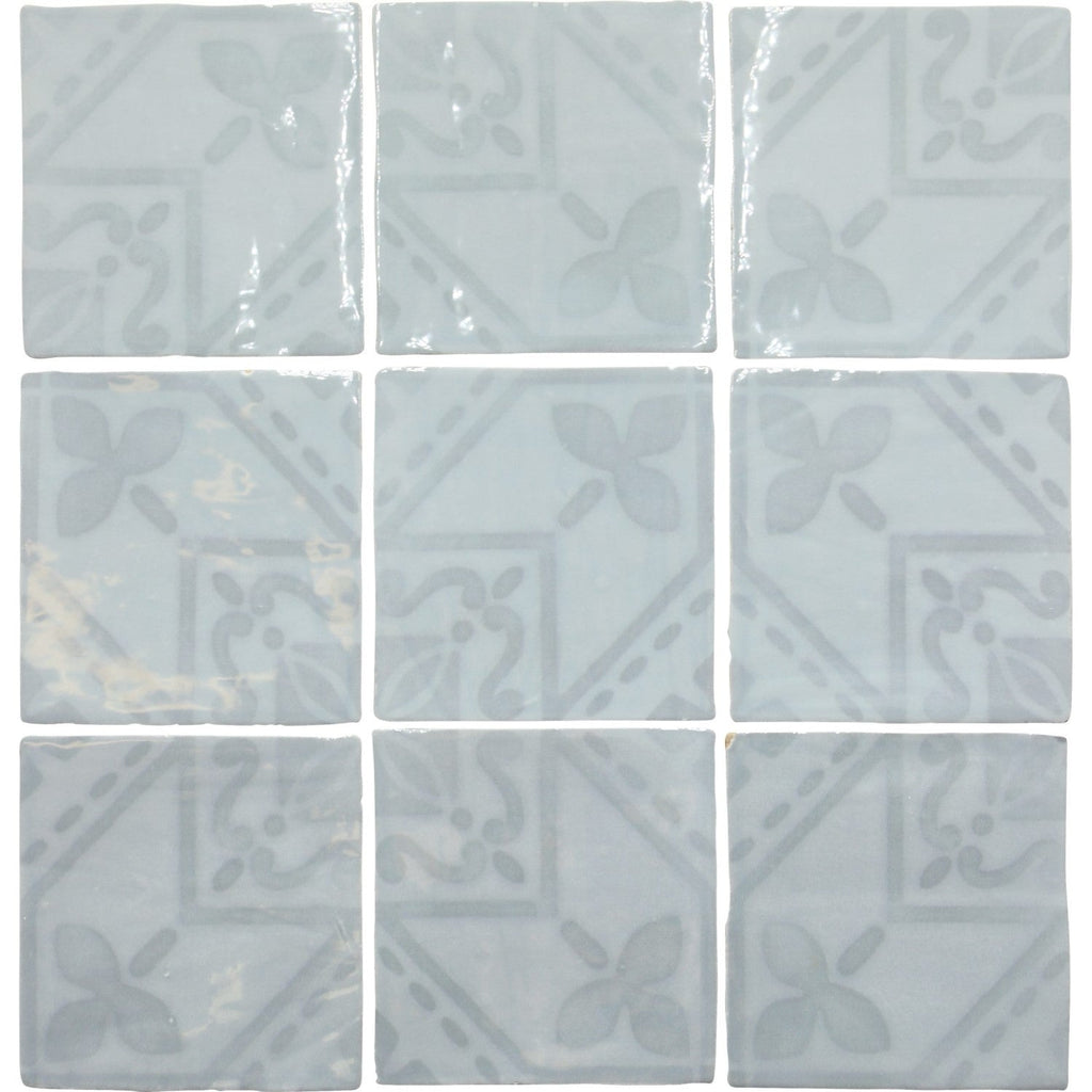 Azulejo Deco 5 x 5 Tile in Glossy Sky Blue Ceramic