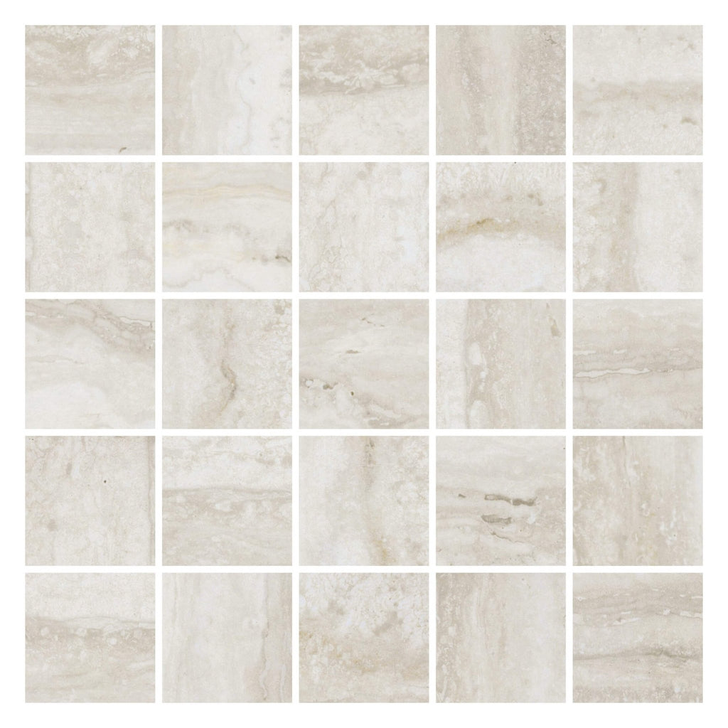 2x2 Inch Squares Tivoli Ice matte rectified porcelain tile mosaic for walls, floors, bathrooms, showers, tub surround, and fireplace surround.