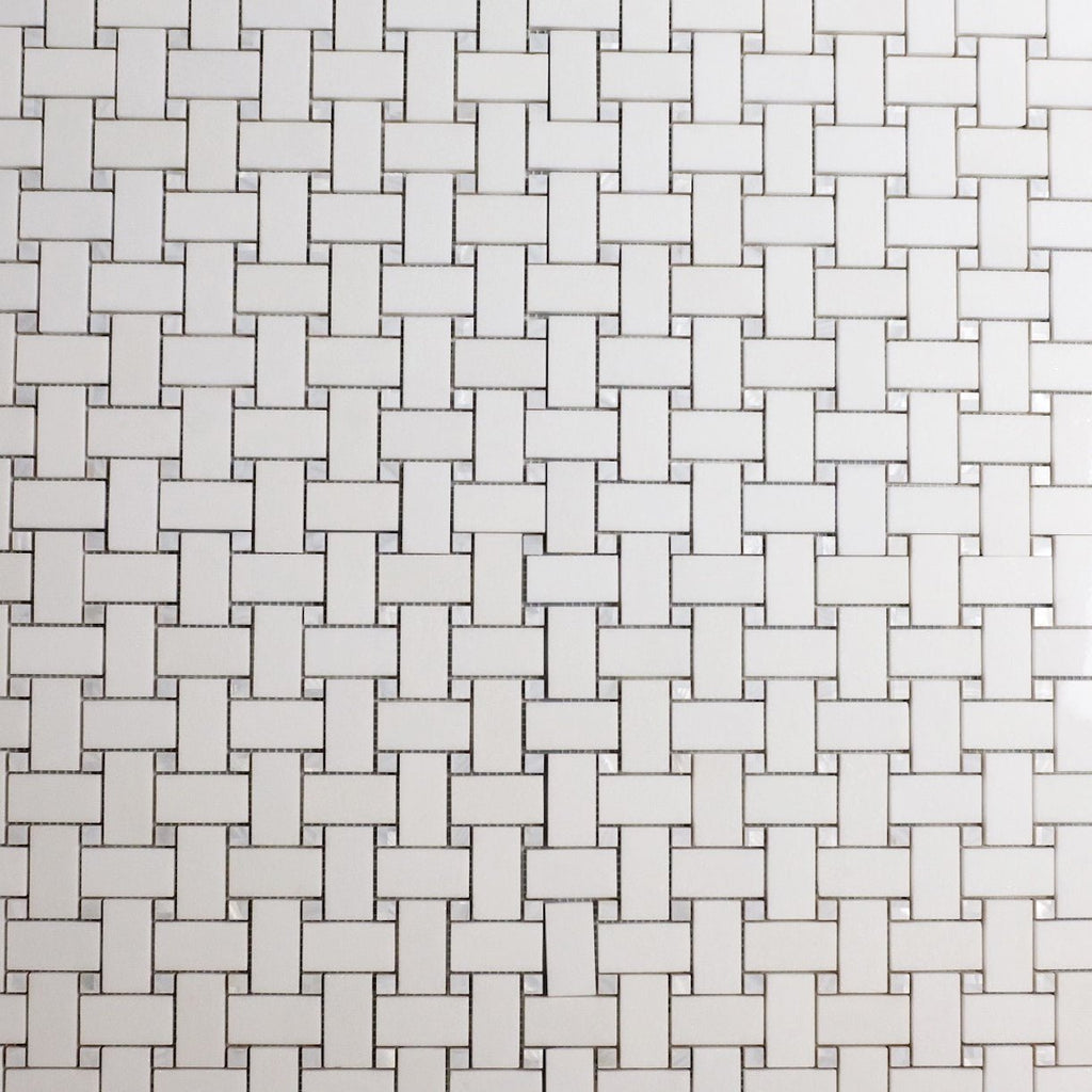 Thassos and Mother of Pearl Basket Weave Marble Mosaic Tile