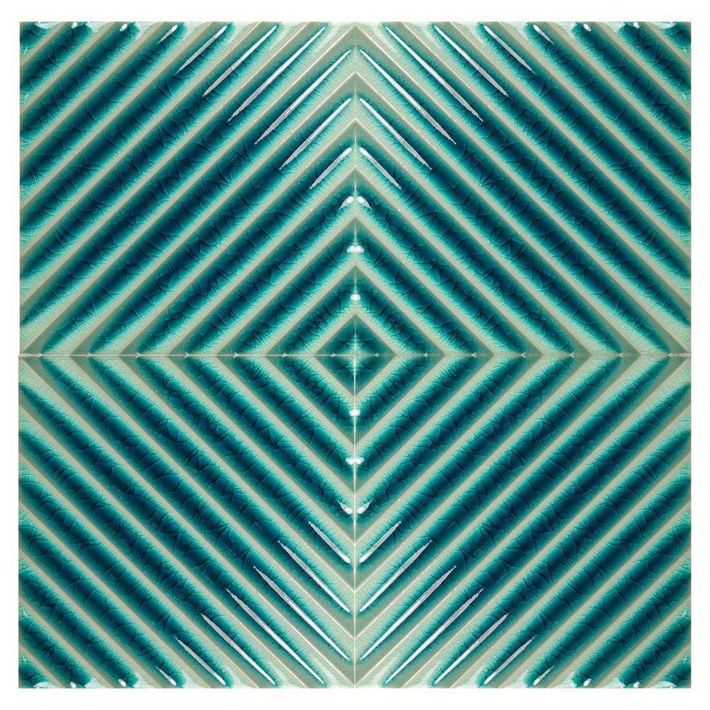 Blue Green Crackle Porcelain Textured Line Pattern 5x5 Tile