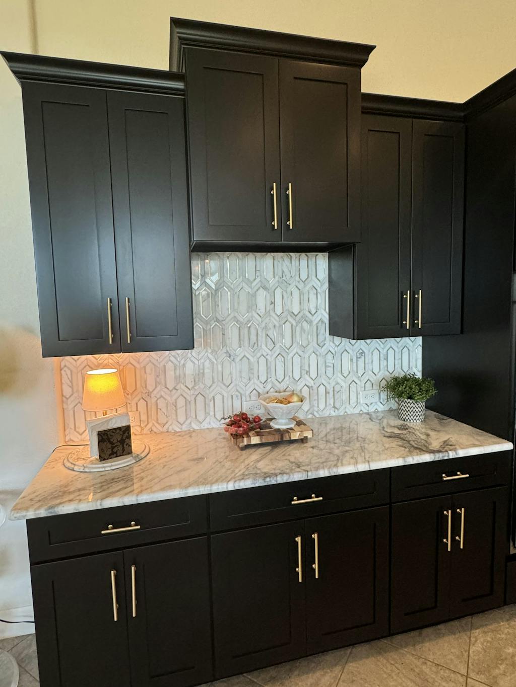 White and gold hexagon tile is perfect for commercial or residential kitchens, bathrooms, and vestibules as accent walls or feature surrounds. Uses include kitchen backsplash, bathroom accent walls, tiled feature wall, dry bar backsplash, and border tile.