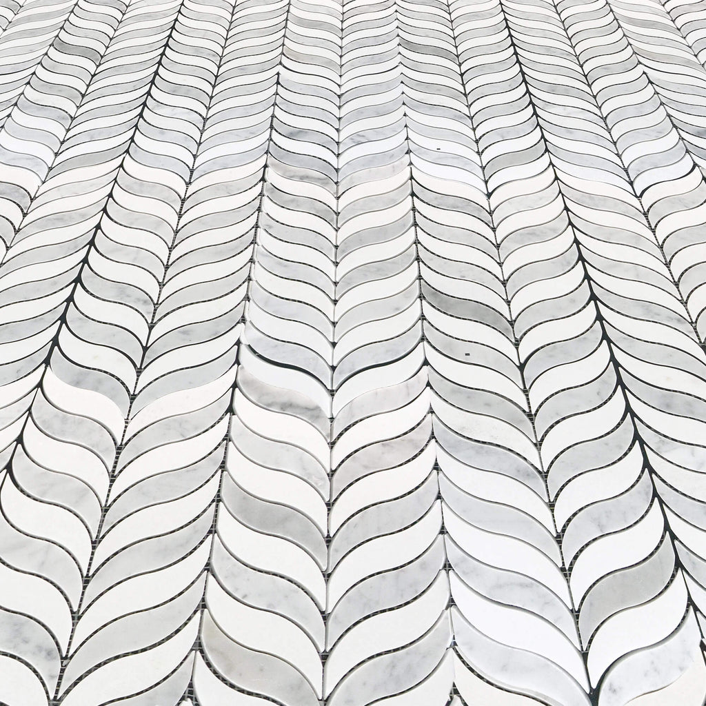 Carrara & Thassos Marble Feather Leaf Mosaic Tile in Tranquil Grace Wings