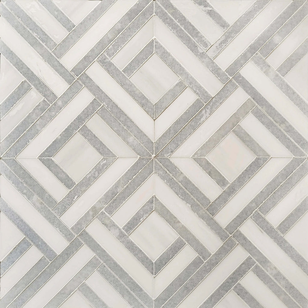 Dolomite & Blue Celeste Marble Lattice Weave Waterjet Mosaic Tile