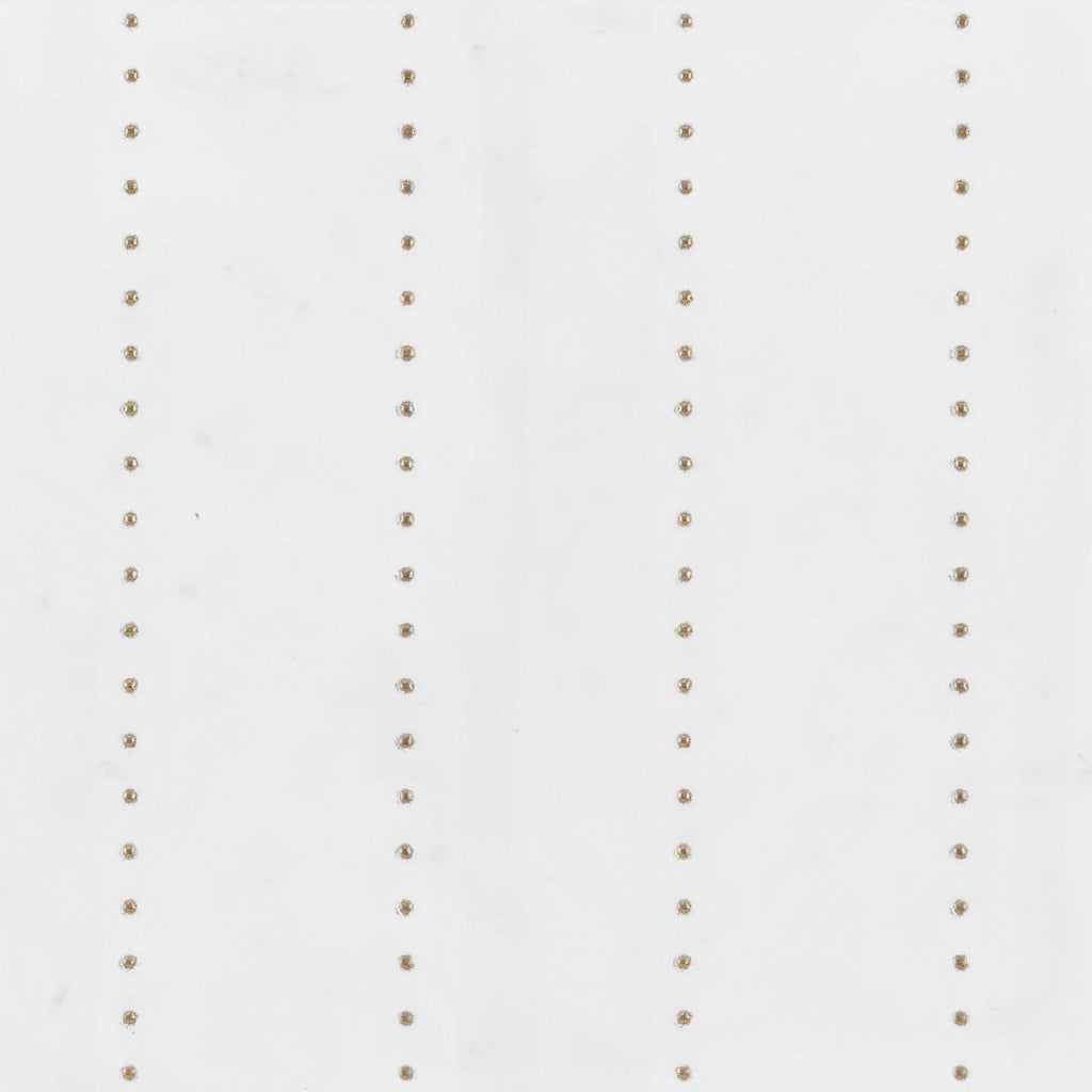 Luxury matte white and gold 12x12 wall tile. Designer white ceramic wall tile with gold dots in quartet pattern (four parallel vertical lines of dots). Luxe white and gold tile. Not suitable for floors or wet areas like shower. Imported from Brazil. This design is available in additional patterns and colors.