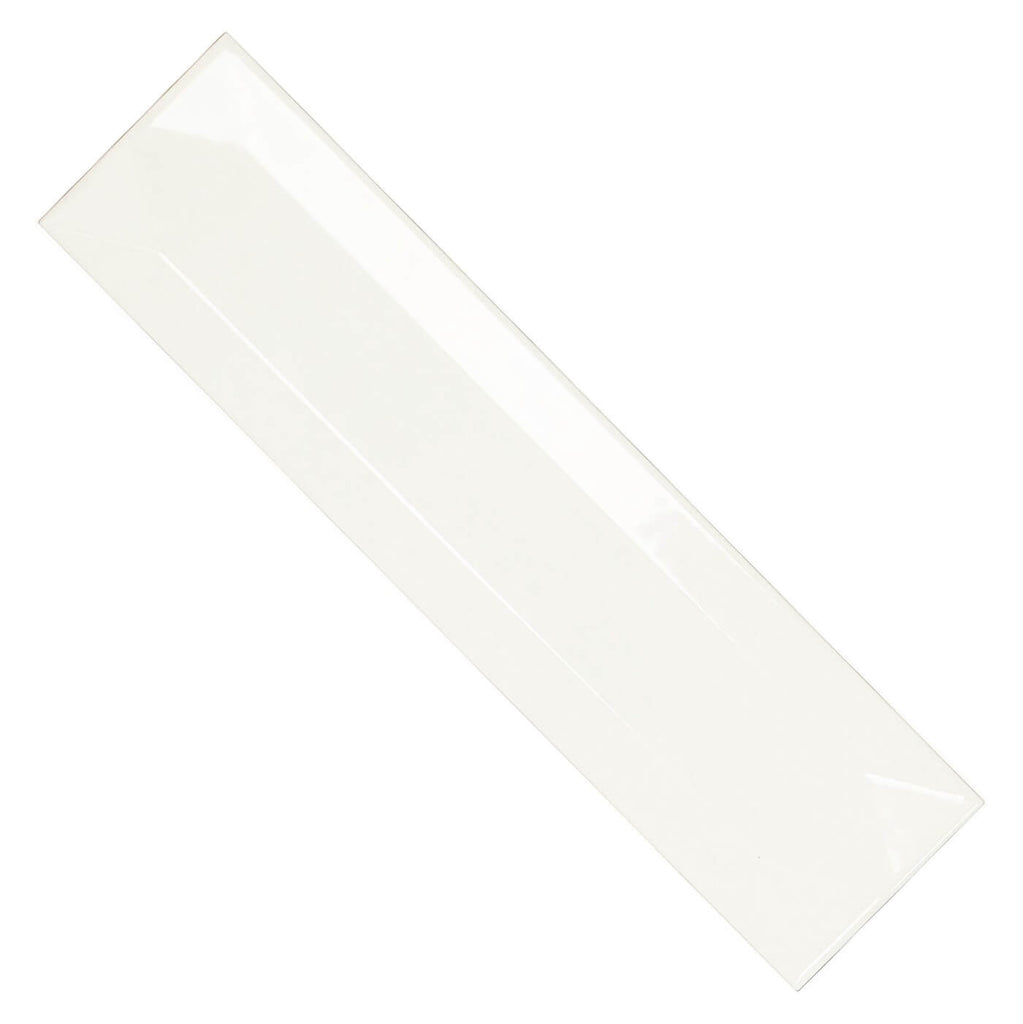 Glossy ceramic 3 x 12 inch three-dimensional subway wall tile in snow white. White 3D subway tile with glossy finish for interior walls including bathroom backsplash, shower walls, and kitchen backsplash. 12 tile faces.