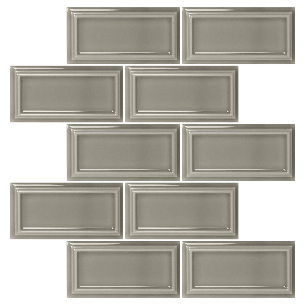 Glossy ceramic bevel subway wall tile in smoke gray. Suitable for backsplash, shower walls, and accent walls. Smoke gray subway brick tile backsplash for wall installation only. Imported from Spain.
