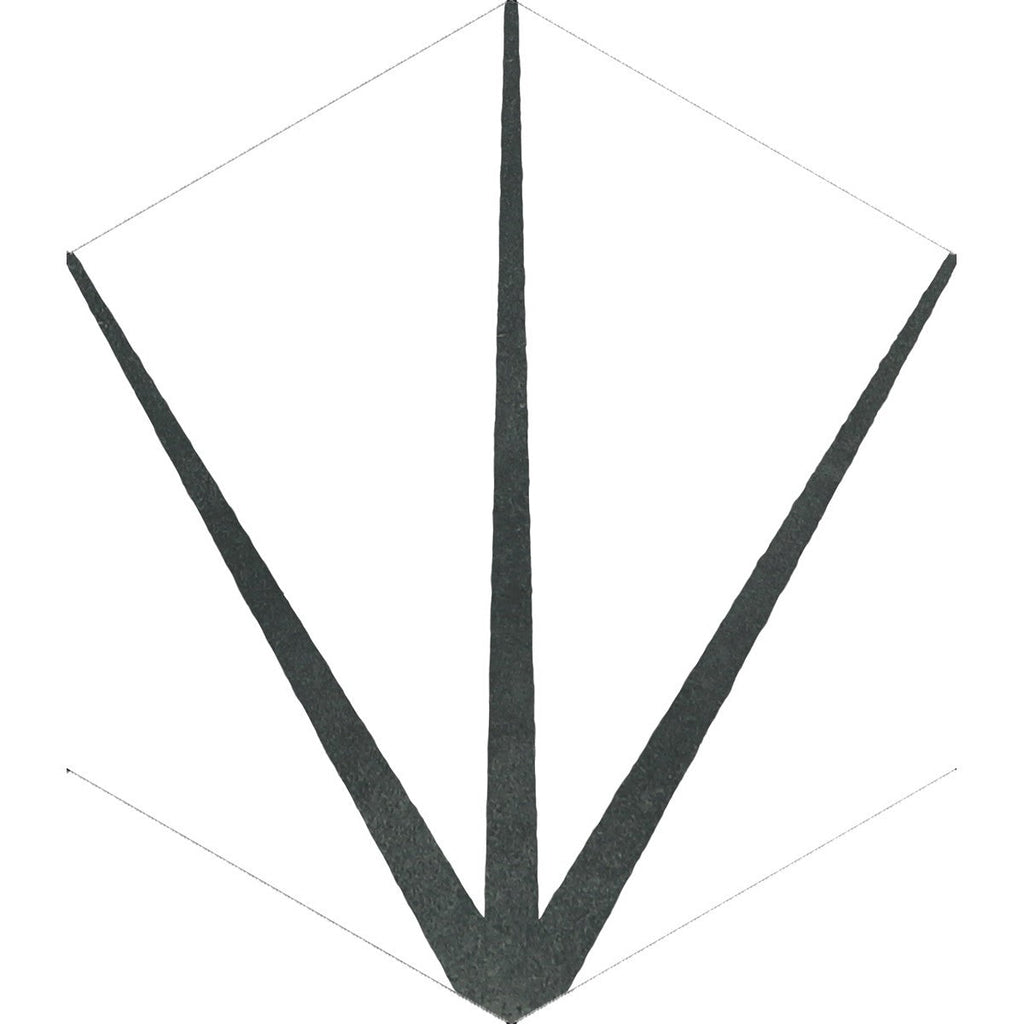 Decorative porcelain field tile featuring a white base accentuated by 3 black lines originating from a single point.