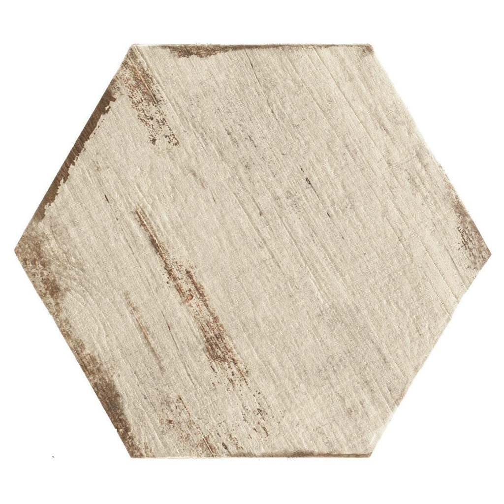 Vintage White Distressed Wood Look 14x16 Hexagon Porcelain Tile