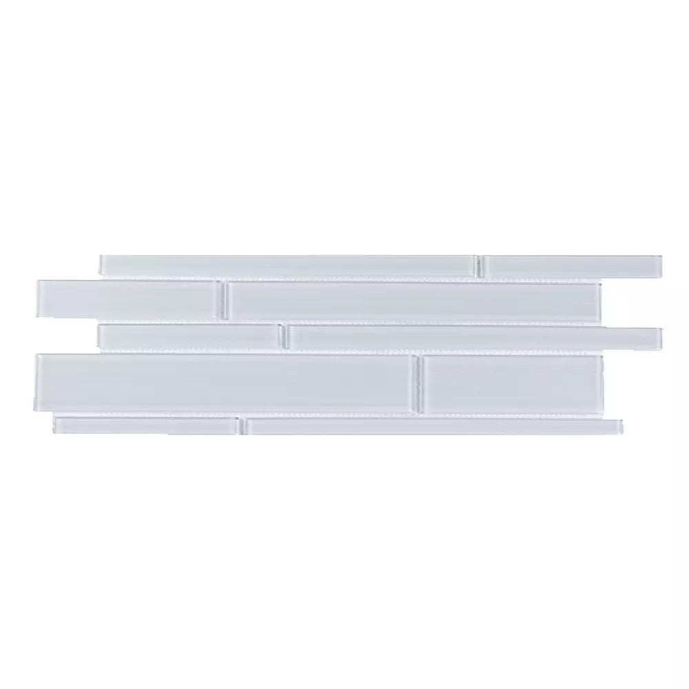 White glass random linear strips mosaic wall tile. White glass linear strip wall tile.